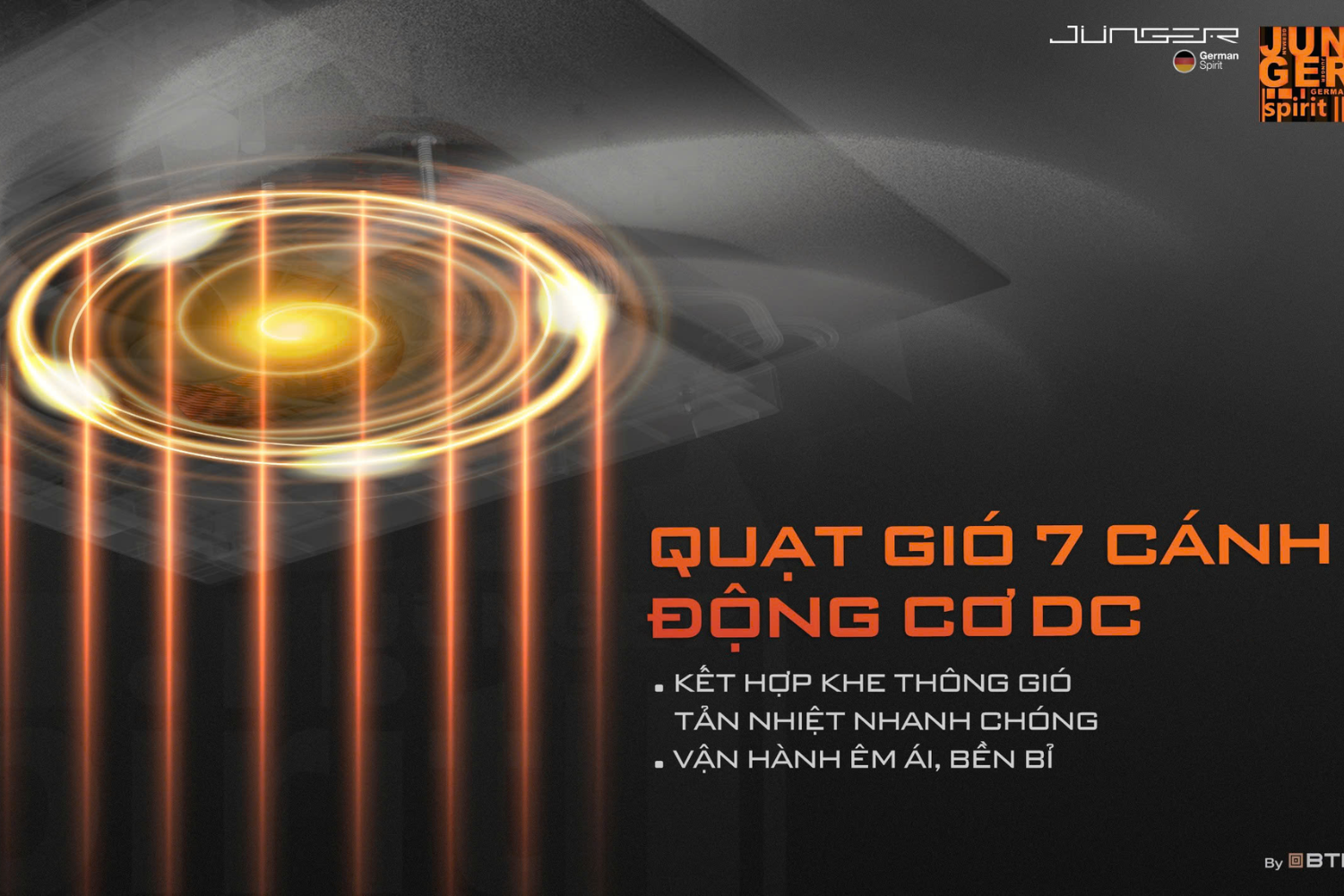 Bếp hồng ngoại đơn Junger ASC-86 được trang bị hệ thống tản nhiệt với quạt gió động cơ DC vận hành êm ái, tiết kiệm điện và có độ bền cao. Thiết kế quạt 7 cánh kết hợp cùng các khe thông gió thông minh trên khung bếp giúp tối ưu khả năng làm mát, đảm bảo linh kiện luôn hoạt động ổn định ngay cả khi bếp nấu ở cường độ cao hay trong môi trường nóng ẩm. Nhờ vậy, bạn có thể thoải mái nấu nướng lâu mà không lo bếp quá nhiệt hay giảm tuổi thọ.