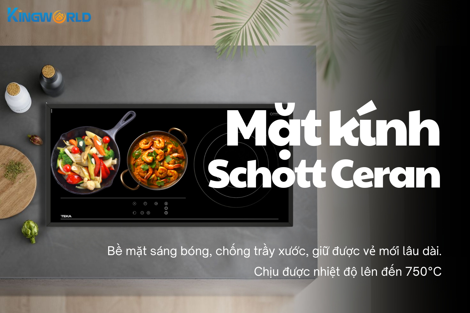 Bếp sử dụng mặt kính Schott Ceran nhập khẩu từ Đức – thương hiệu nổi tiếng toàn cầu về độ bền và khả năng chịu nhiệt. Loại kính này chịu được nhiệt độ lên đến 750°C. Khả năng chống sốc nhiệt cao, không nứt vỡ khi thay đổi nhiệt độ đột ngột. Dễ dàng lau chùi chỉ với khăn ẩm, kể cả khi thức ăn trào ra ngoài. Bề mặt sáng bóng, chống trầy xước, giữ được vẻ mới lâu dài.