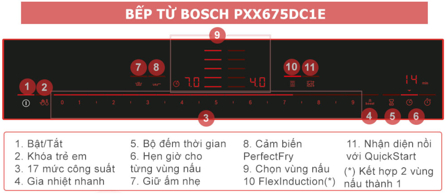 Bếp từ Bosch PXX675DC1E được trang bị hàng loạt công nghệ tiên tiến, biến việc nấu ăn trở thành một trải nghiệm dễ dàng và đầy cảm hứng: