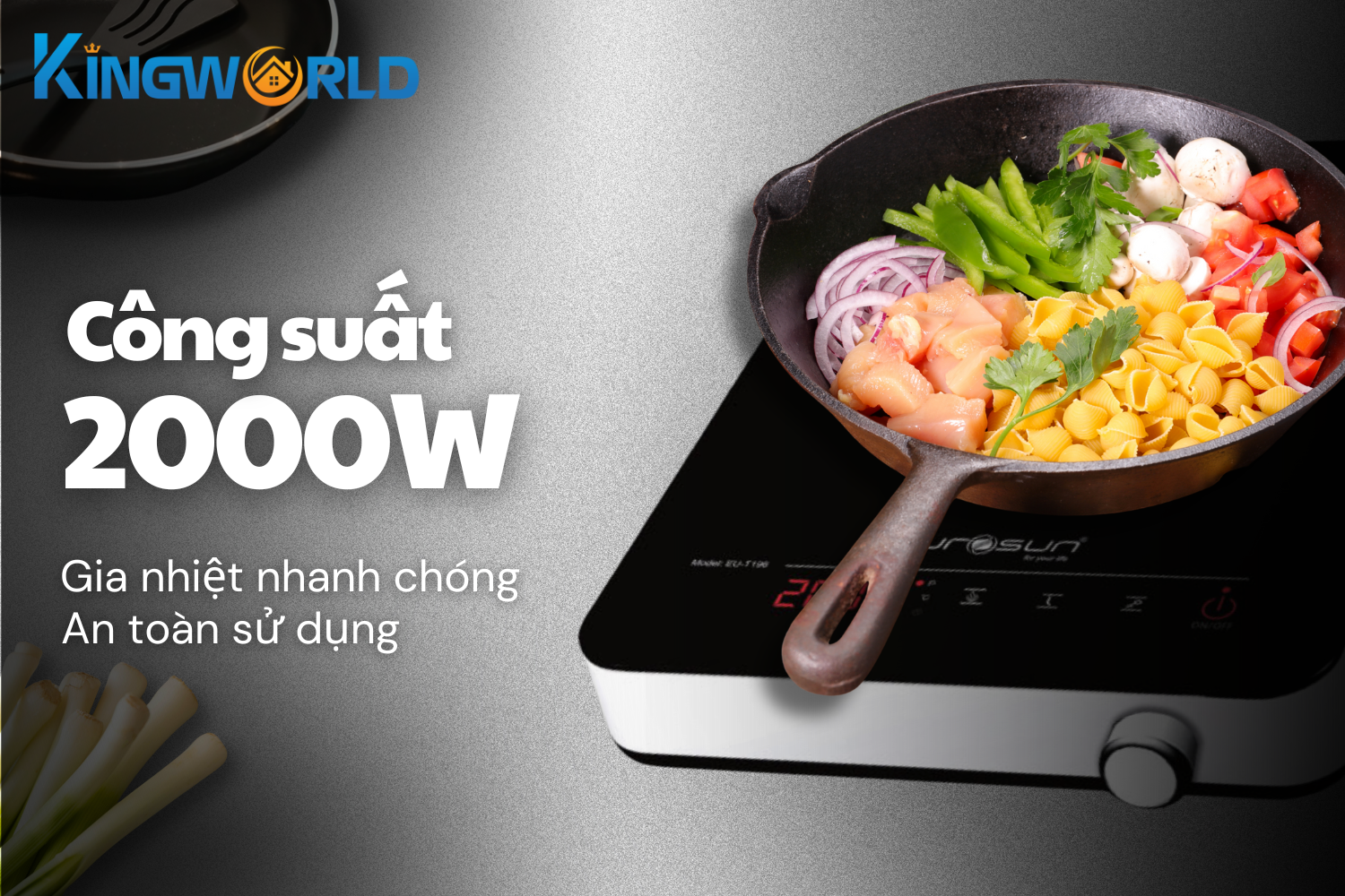 Eurosun EU‑T197 là bếp từ đơn một vùng nấu, sử dụng công nghệ cảm ứng từ hiện đại để truyền nhiệt trực tiếp vào đáy nồi. Dù chỉ có một vùng nấu, thiết bị vẫn đáp ứng tốt mọi nhu cầu nấu ăn cơ bản như luộc, xào, hâm nóng, nấu lẩu... Đây là lựa chọn lý tưởng cho người sống độc thân, sinh viên, các căn hộ nhỏ, hoặc làm bếp phụ trong gia đình đông người – đặc biệt tiện lợi trong các dịp cần nấu thêm món phụ mà không muốn chờ bếp chính trống.
