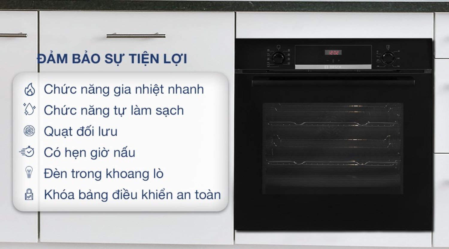 Bosch luôn đặt sự an toàn lên hàng đầu, và lò nướng Bosch HBG5370B0 được trang bị đầy đủ các tính năng bảo vệ: