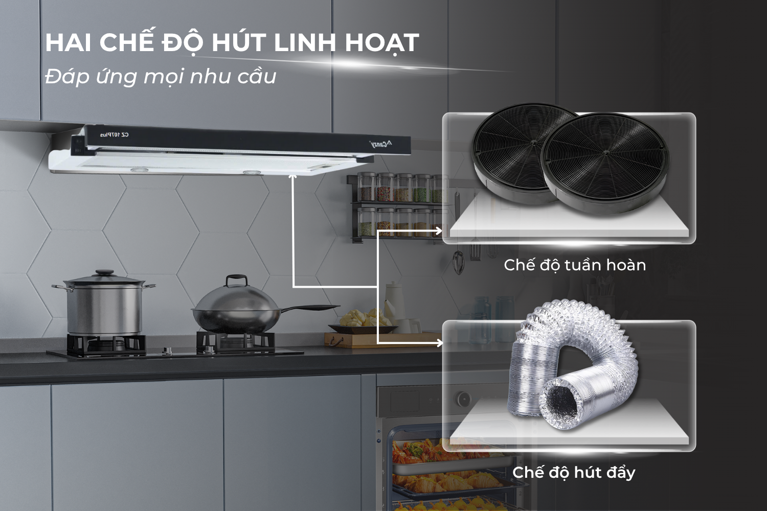 Hai chế độ hút linh hoạt: đẩy ra ngoài và khử mùi tại chỗ
