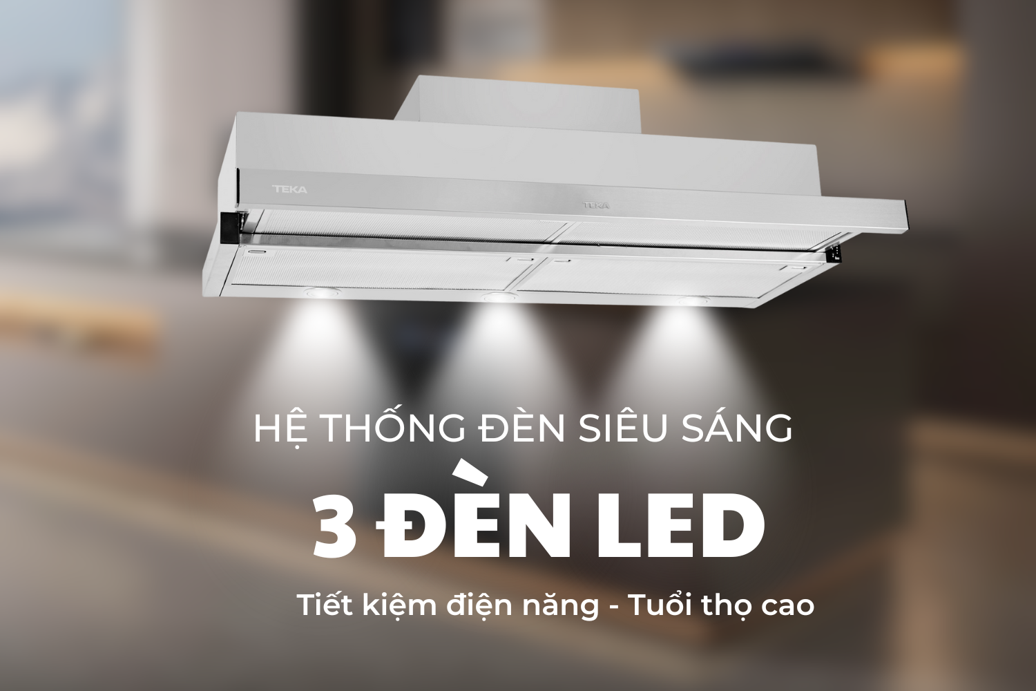 Máy hút mùi Teka CNL 9610 được trang bị 3 đèn LED bố trí hợp lý, cung cấp ánh sáng đều khắp vùng nấu. Ánh sáng không quá gắt, giúp bạn dễ dàng quan sát màu sắc thực phẩm, tránh cháy khét hoặc nấu quá lửa.